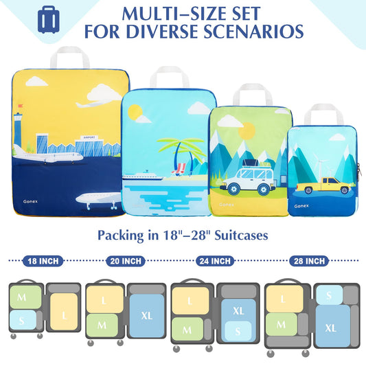 Gonex 4pcs Compression Packing Cubes Expandable Bags for Suitcase Carry On